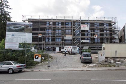 Die Württembergische Schwesternschaft vom Roten Kreuz e. V. baut ihr Alten- und Pflegeheim in der Wolfstraße 14 in Sindelfingen neu. Eindrücke über den Baufortschritt im August und September 2014 vermittelt Ihnen unsere Bildergalerie. Klicken Sie auf eines der Vorschaubilder für eine größere Ansicht.