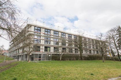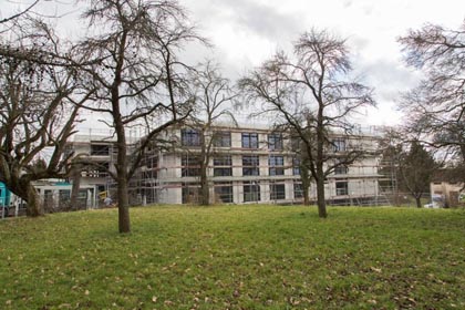 Die Württembergische Schwesternschaft vom Roten Kreuz e. V. baut ihr Alten- und Pflegeheim in der Wolfstraße 14 in Sindelfingen neu. Eindrücke über den Baufortschritt im Februar 2014 vermittelt Ihnen unsere Bildergalerie. Klicken Sie auf eines der Vorschaubilder für eine größere Ansicht.